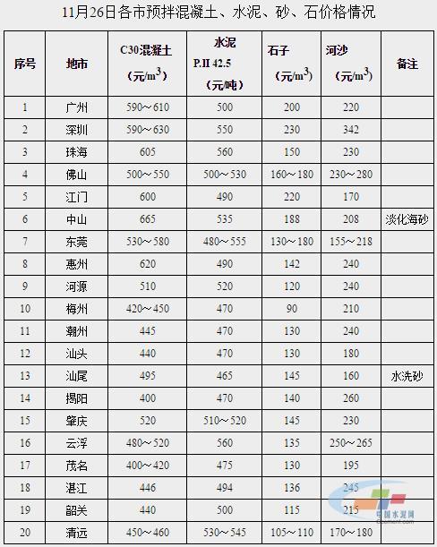 广东省混凝土及原材料价格仍高位运行 混凝土最高665元/方